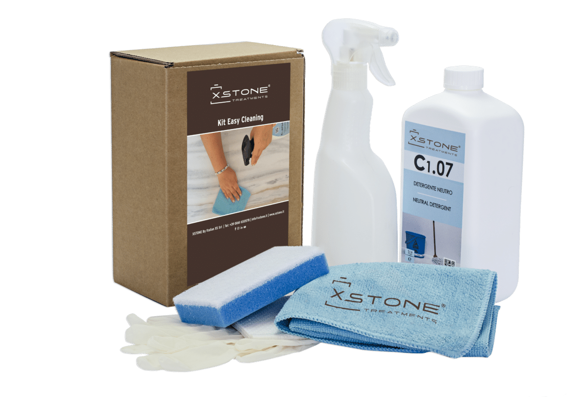 KIT COMPLET PROFESIONAL detergent + protectie pete de cafea, vin, ulei, grasimi pentru suprafete din piatra naturala, marmura, granit, cuartit, XSTONE, 250ml