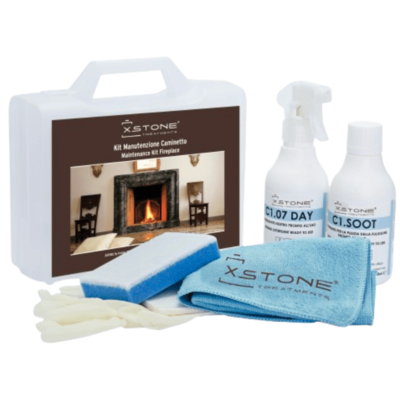 KIT COMPLET PROFESIONAL detergent curatare depuneri de murdărie și grăsimi arse de pe cuptoare, seminee, grătare sobe, caramida, sticla, marmura, granit, piatra naturala, beton, Caminetto, XSTONE, 250ml