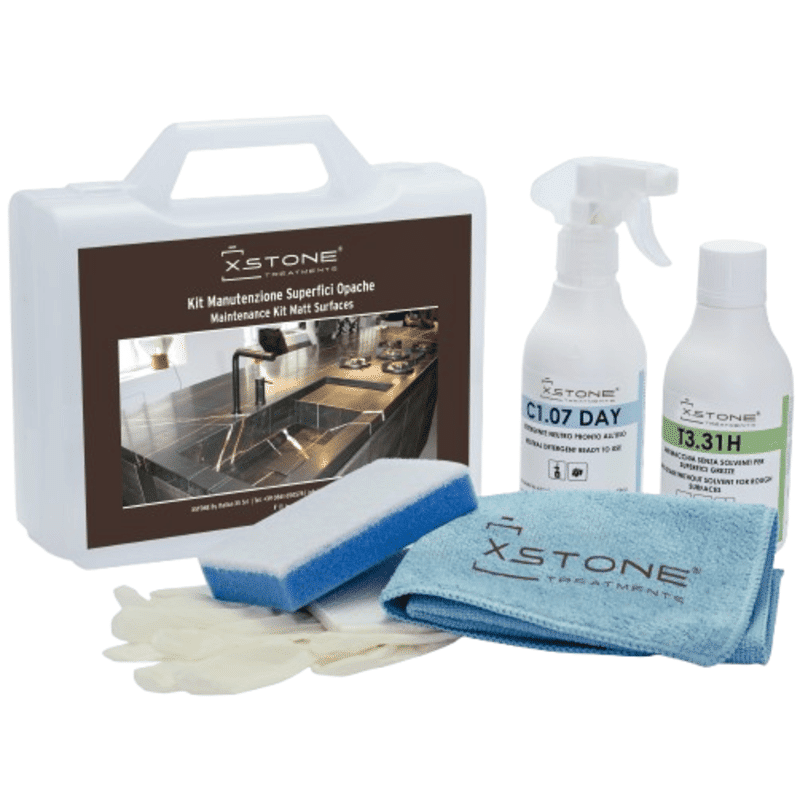 KIT COMPLET PROFESIONAL de curatare MULTI-SUPRAFETE pentru piatra naturala, ceramica, beton, gresie portelanata, lemn, otel, marmura, compozit, blaturi bucatarie, baie, FARA ACIZI, Easy Cleaning, XSTONE, 1L