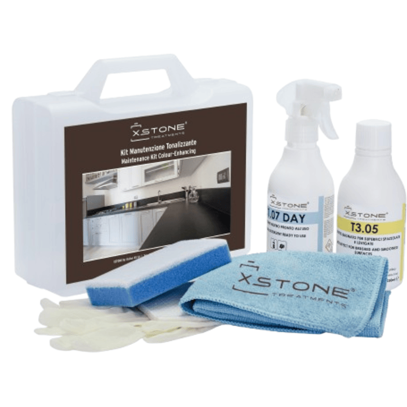 KIT COMPLET PROFESIONAL INTENSIFICATOR care reda STRALUCIREA originala a BLATURILOR de bucatarie, de baie, a pietrelor, gresiei, marmurei, granitului, Blaturi Bucatarie, Baie, Tonalizzante, XSTONE, 250ml