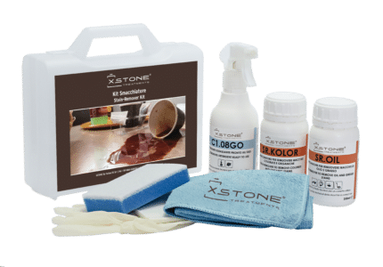 KIT COMPLET PROFESIONAL detergent + decapant pete de cafea, vin, bauturi carbogazoase, ceai, tutun, fructe, grasimi, ulei pentru suprafete din piatra naturala, marmura, granit, XSTONE, 250 ml